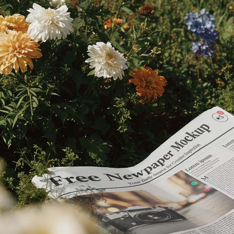Free mockup of a newspaper in a flower field is perfect for presenting your beverage packaging design, or visual identity projects. Designed for creatives and brands, it’s fully editable and compatible with