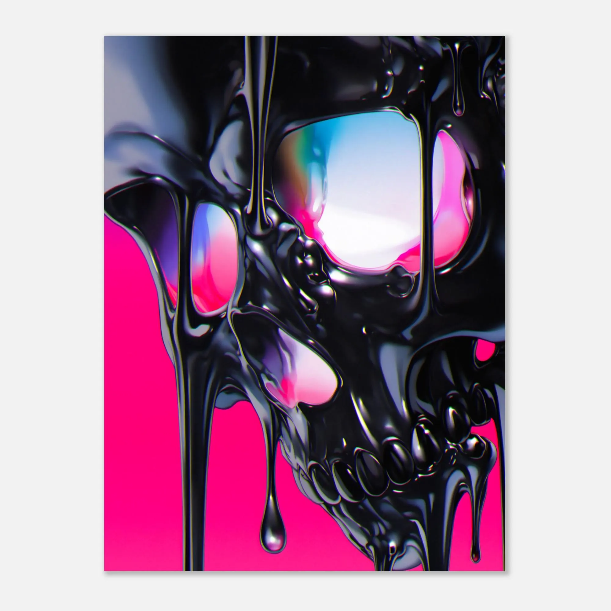 ultra-glossy finish, capturing the aesthetic of melting metal. The deep, dripping black is illuminated by intense